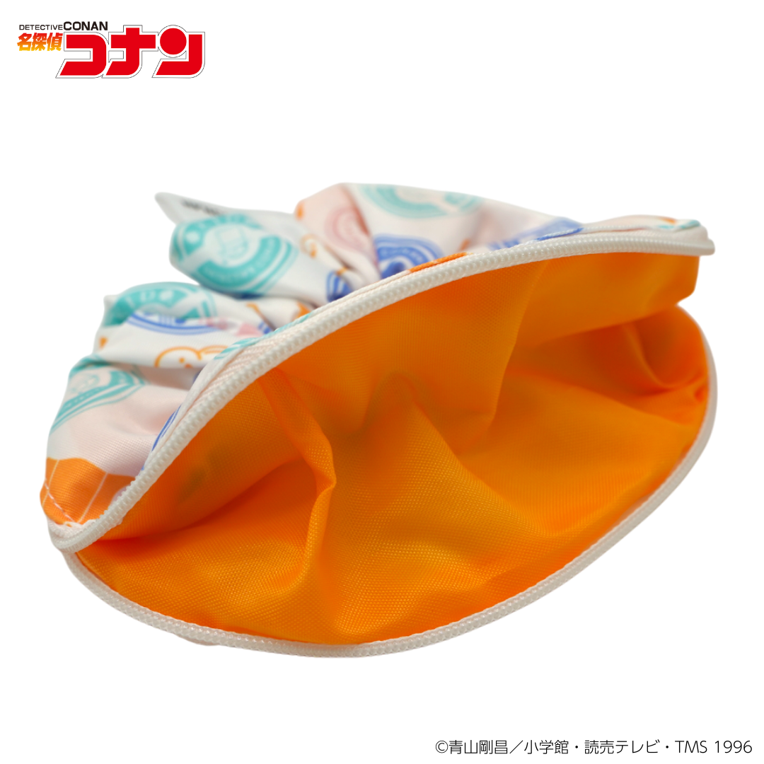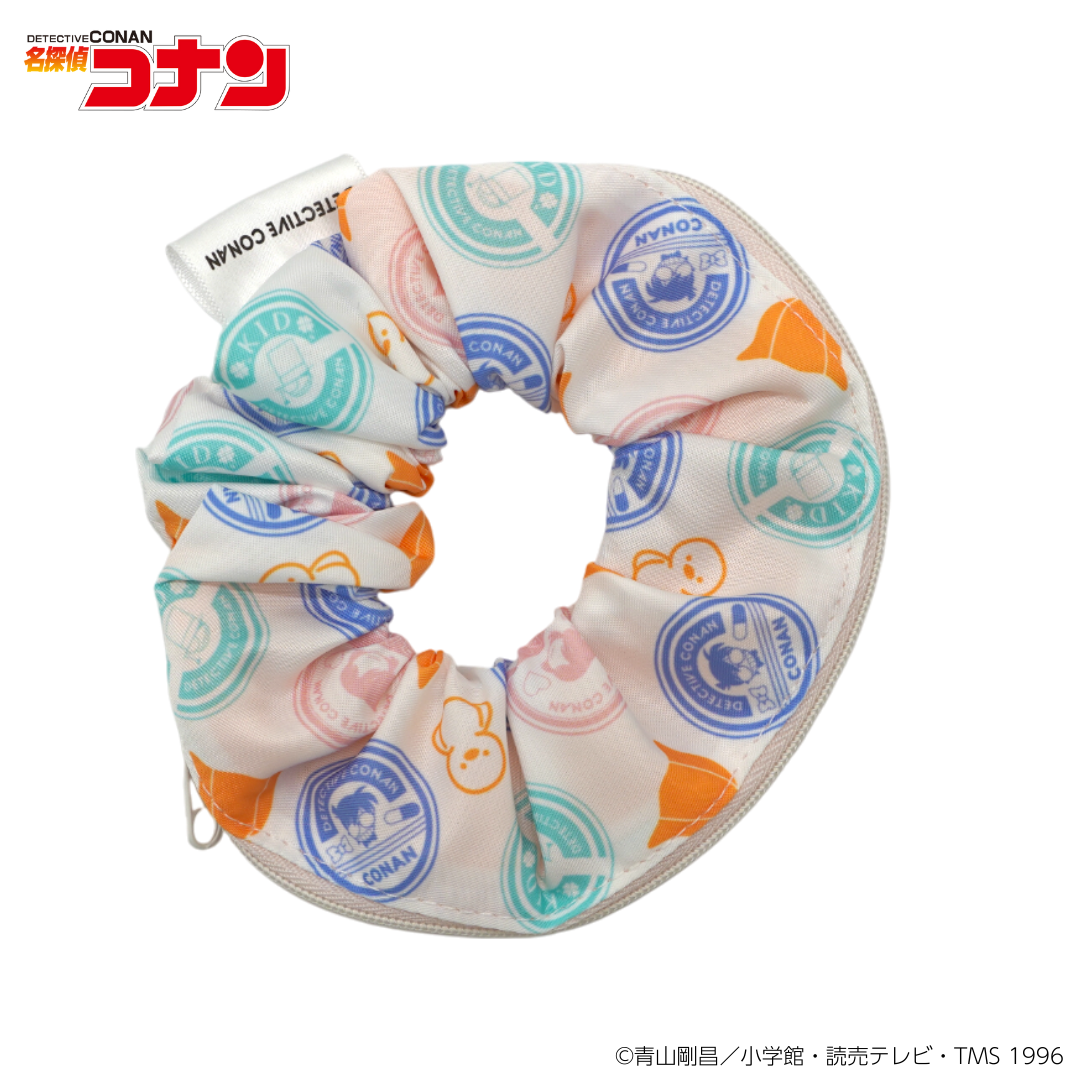 「名探偵コナン」から、遊び心あふれるシュシュポーチが登場。コナン、蘭、キッドたちが、銭湯の定番「牛乳瓶」モチーフになった愛らしい限定パターン柄です。手首に着けてリストバンドにしたり、髪をまとめたりと、身に着けるだけでワクワクするデザイン。