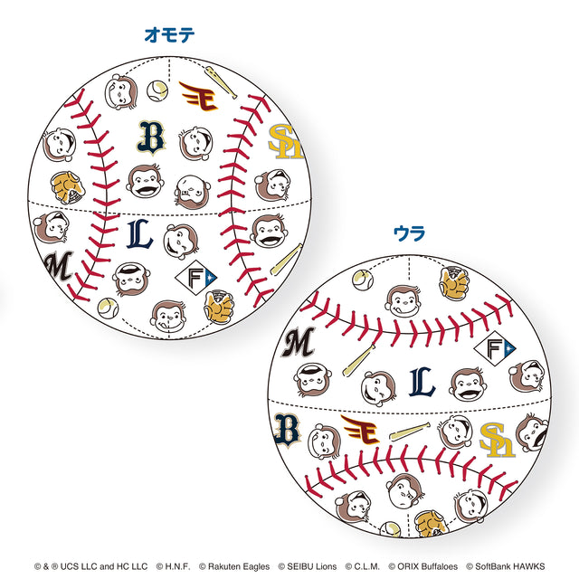 世界中で愛されるおさるのジョージとパ・リーグ6球団がコラボした野球ボールぬいぐるみ。